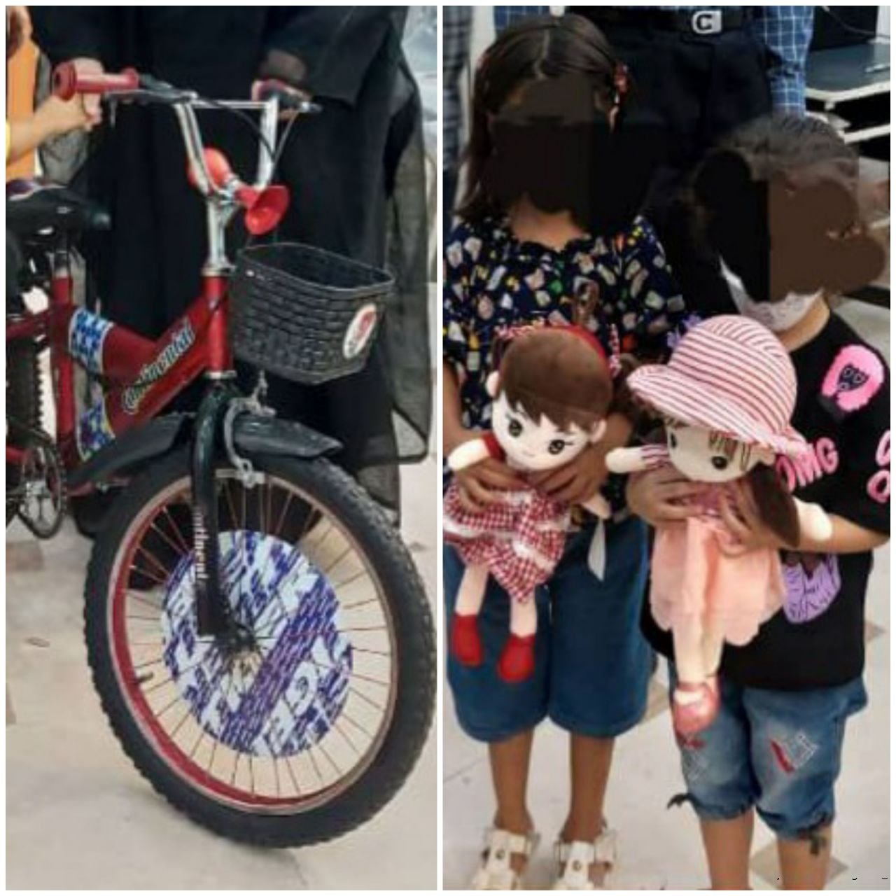 اهدای یک دستگاه دوچرخه و اهدای ٢عدد عروسک به کودکان و نوجوانان مهرجوی تحت پوشش